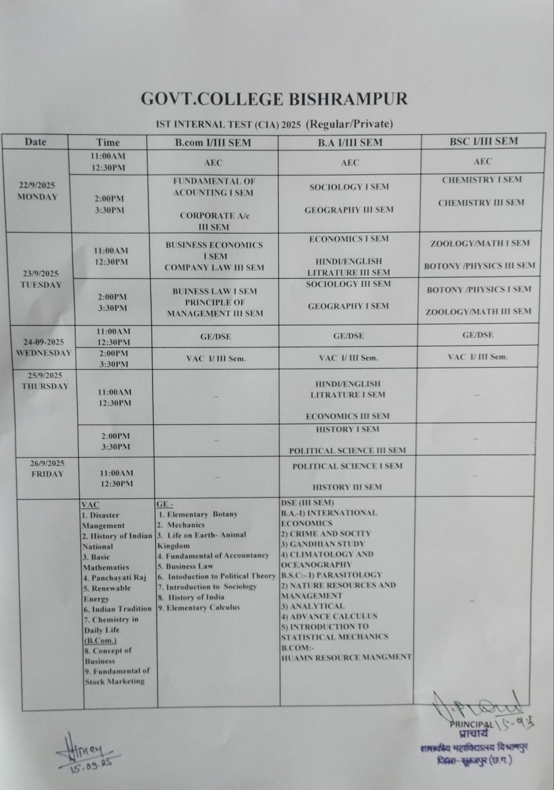 1 First Enternal Test (CIA) Time Table18-09-2025 Click Here